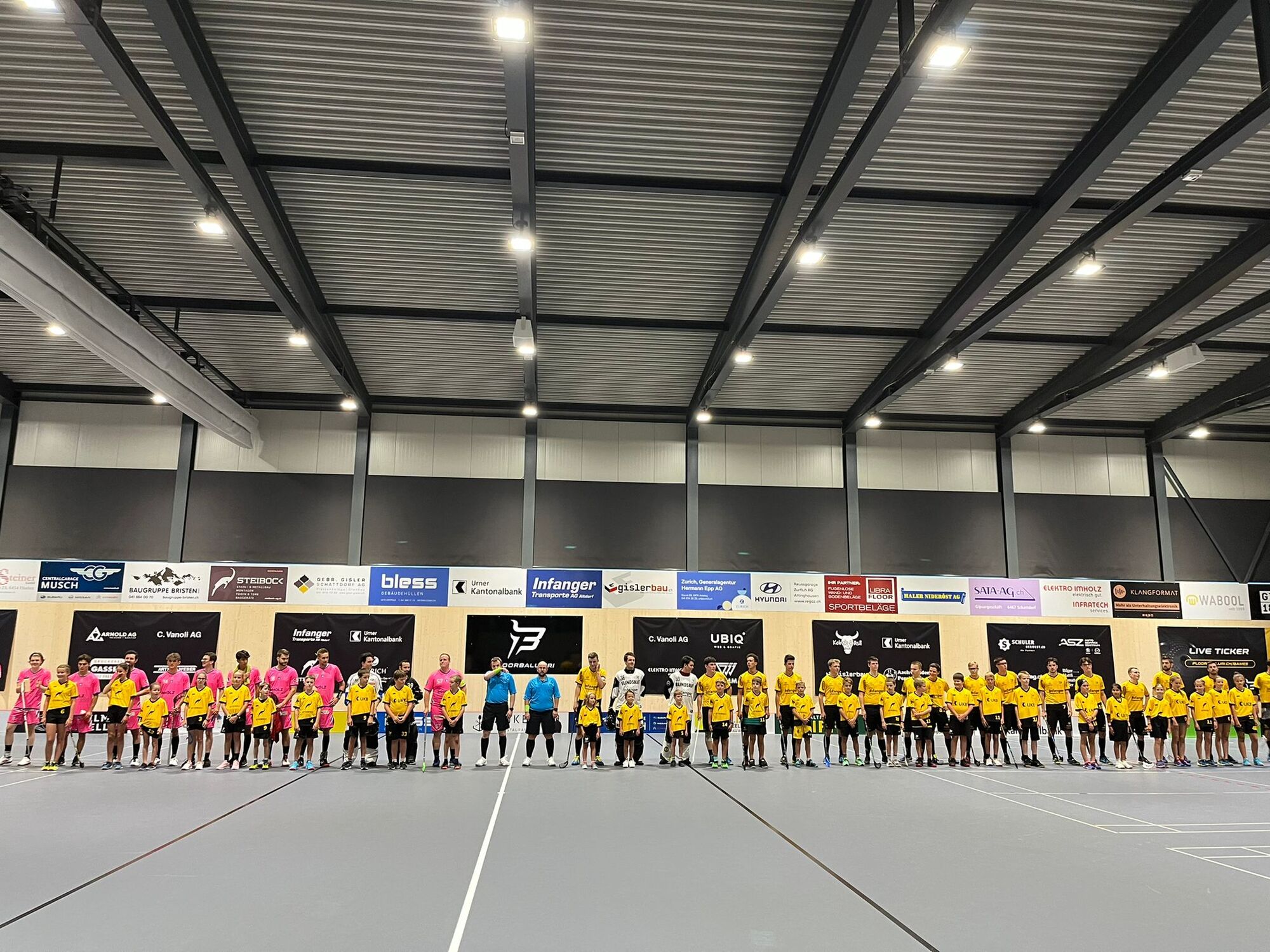 Nach monatelanger Arbeit war es diesen Samstag endlich so weit, die energieUri Arena wurde feierlich eröffnet. Das breitgefächerte Unterhaltungsprogramm fand seinen Höhepunkt beim abendlichen Cup-Krimi gegen den Ligakonkurrenten aus Zug. Vor einer Vielzahl von Zuschauern und tosender Stimmung konnten sich die Stiere so ein erstes Mal im neuen Zuhause präsentieren. Zwar war die Anspannung enorm, doch auf dem Feld herrschte von Anfang an höchste Konzentration. Die Partie war gezeichnet von grossem defensivem Einsatz, zahlreicher Zweikämpfe und vielen Torszenen. Ein Paradebeispiel hierfür war Livio «the Wall» Weltert, welcher sich unzählige Male wagemutig in gegnerische Abschlüsse warf. Gerade wegen der harten Arbeit in der Verteidigung und top Leistungen der beiden Torhüter zeigte sich ein eher Unihockey untypisches Bild auf der Anzeigetafel. So stand es bis zur 50 Spielminute noch 0:0 und dies trotz 2 Powerplaysituationen für die Gästemannschaft. Ein schneller Konter der ersten Hünenberger Sturmlinie führte dann doch in den Schlussminuten erstmals zu einem Treffer. Mit Druck nach vorne, den Fans im Rücken und viel Verkehr vor dem Tor gelang es Urs Arnold postwendend den Anschlusstreffer für die Tell’s Söhne zu verbuchen. Der emotionale Höhenflug wurde jedoch abrupt gebremst. Vier Minuten vor Spielende passte ein Abschluss aus dem Slot haargenau unter die Latte des urner Tores. Mit letzten Kräften versuchten die Hausherren erneut den Ausgleich zu erzielen und spielten die letzten Minuten mit einem zusätzlichen Feldspieler und ohne Torwart. Die erfahrenen Zuger nutzten dies jedoch eiskalt aus. Mit zwei Empty Netter beendeten sie die Cupträume der Urner.